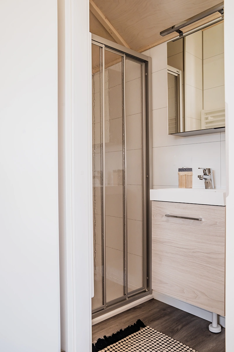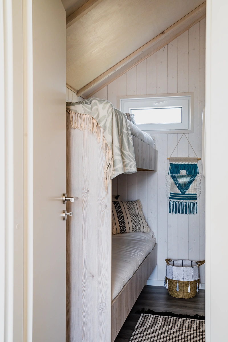 Met een wanddikte van 40 mm is de Marlin Beach speciaal ontworpen voor gebruik in de zomer en niet geschikt voor gebruik in de winter. De lichtgewicht constructie zorgt voor een luchtig woongevoel dat perfect is voor het strandleven. Dit strandhuis biedt alles wat je nodig hebt voor een geslaagd strandverblijf in een compacte ruimte. Twee aparte slaapkamers, een met een tweepersoonsbed en de andere met een praktisch stapelbed, maken deze stacaravan de ideale keuze voor koppels, kleine gezinnen of vrienden. Het grote terraselement geeft je direct toegang tot het terras, de perfecte plek voor een ontbijt in de buitenlucht of ontspannende avonduren. Het ruimteconcept wordt afgerond door een moderne badkamer met douche en toilet. De Marlin Beach stacaravan staat voor ongecompliceerd, stijlvol wonen direct aan zee - natuurlijk, licht en ontspannend.