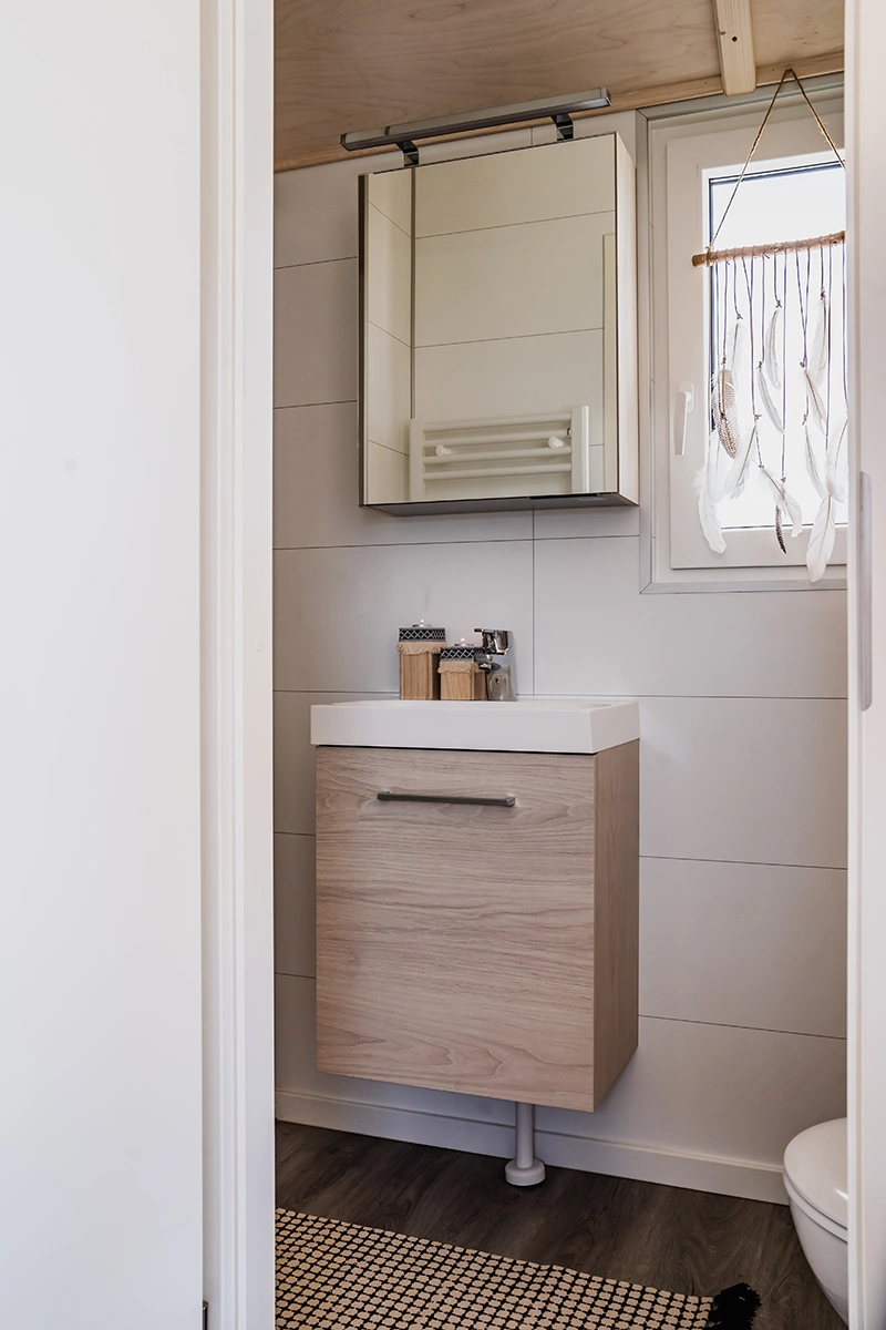 Kleine wastafel met badmeubel en spiegelkast