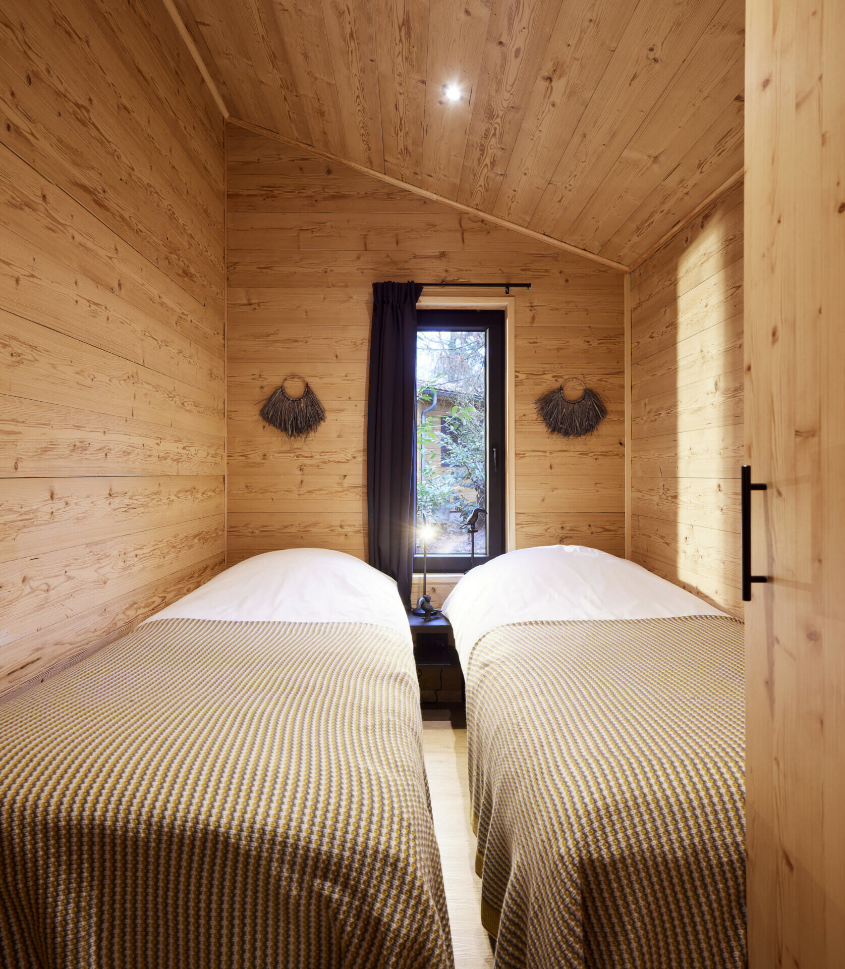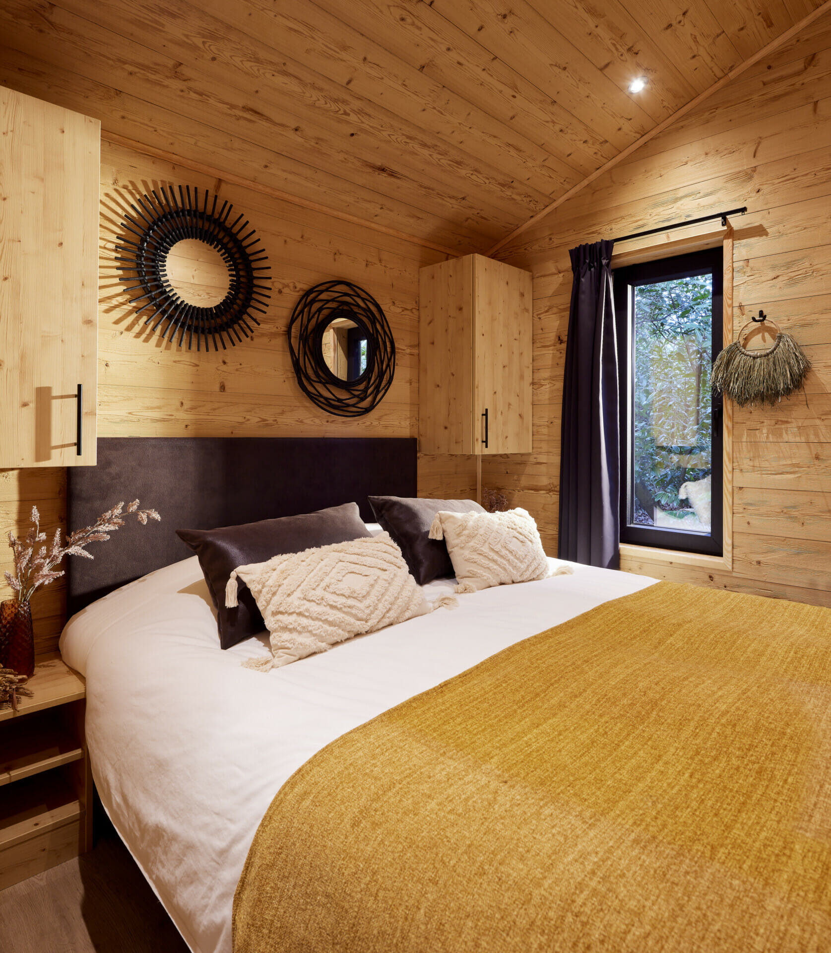 Het interieur combineert warme houttinten en donkere accenten tot een harmonieus geheel. De woonkamer maakt indruk met LED-spots die een gezellige sfeer creëren, terwijl de functionele keuken een echte blikvanger is: zwarte inbouwapparatuur, een groot werkblad en slimme opbergoplossingen maken het tot het hart van de stacaravan. Een luxueus boxspringbed, nachtkastjes en een ruim wandmeubel met schuifdeuren maken van de grote slaapkamer een echte oase van welzijn. U kunt de tweede slaapkamer aanpassen om een ruimte te creëren voor gasten, kinderen of individuele behoeften. De stacaravan LACET Nova biedt je het hele jaar door een gezellige woonervaring. Dankzij de hoogwaardige isolatie, thermisch isolerende ramen en efficiënte centrale verwarming op gas blijft het zelfs op koude dagen behaaglijk warm. Dit maakt deze stacaravan de perfecte plek om te ontspannen op elk moment van het jaar.