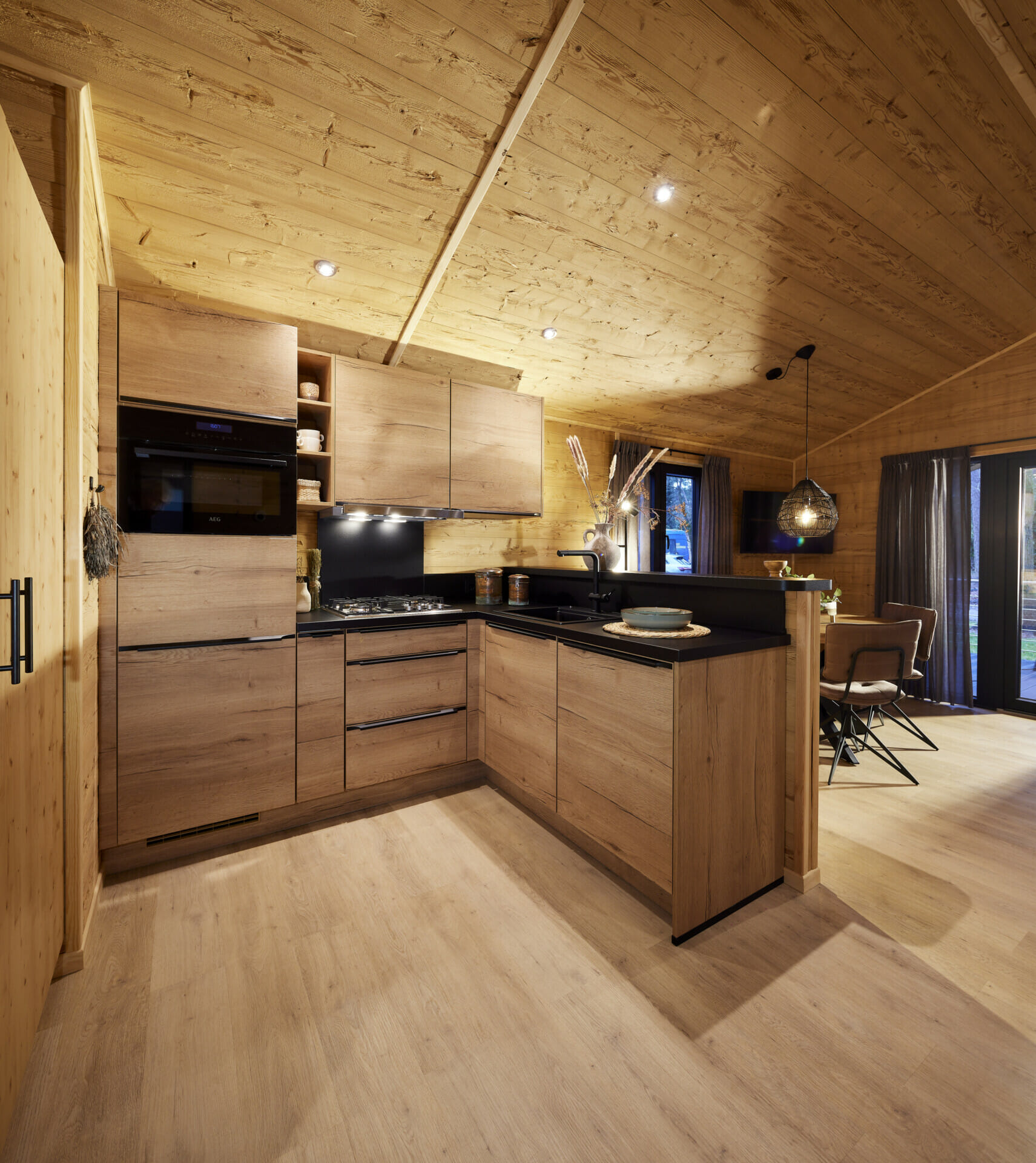 Ervaar de perfecte combinatie van rustieke flair en tijdloos design in de LACET Nova stacaravan, jouw thuis midden in de natuur. Met hoogwaardige materialen zoals de teruggewonnen houtlook uit Oostenrijk en elegante accenten creëert deze stacaravan een warme, uitnodigende sfeer. Als vakantiehuis of voor langere tijd - de LACET Nova combineert comfort en esthetiek op het hoogste niveau. Op 53 vierkante meter kunt u een goed doordachte kamerindeling verwachten die comfort en gezelligheid perfect combineert. De open woon- en eetruimte is gemaakt voor gezamenlijke momenten, terwijl het ruime overdekte terras naadloos aansluit op het interieur. Of het nu voor de eerste koffie van de dag is of voor gezellige avonden bij zonsondergang: de overdekte buitenruimte wordt gegarandeerd je nieuwe favoriete plek.