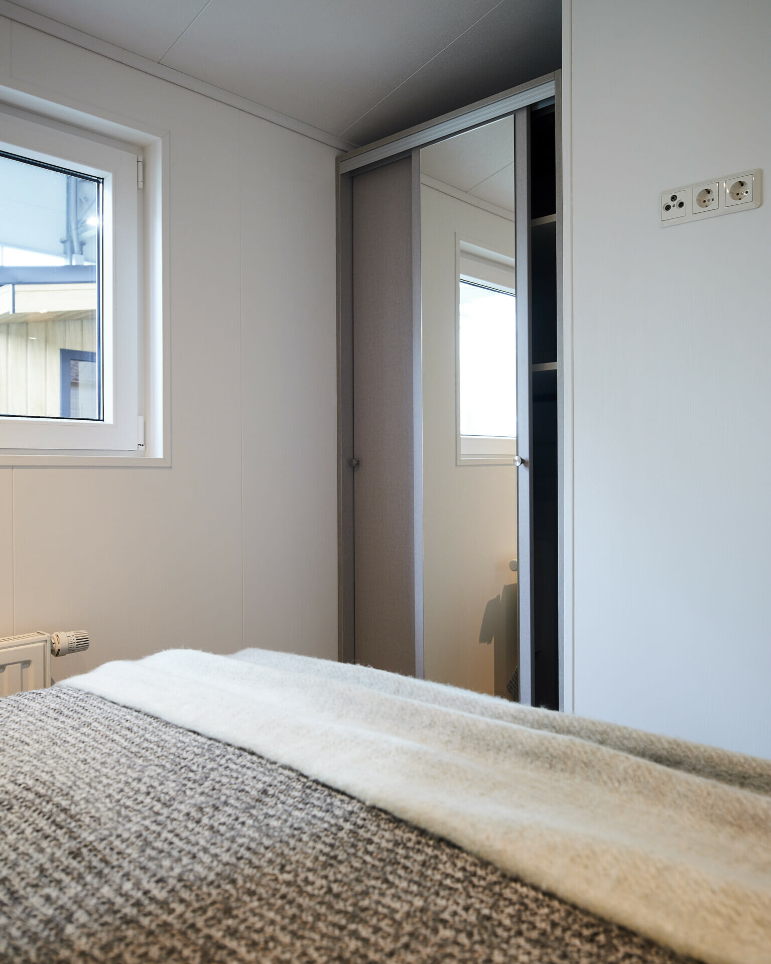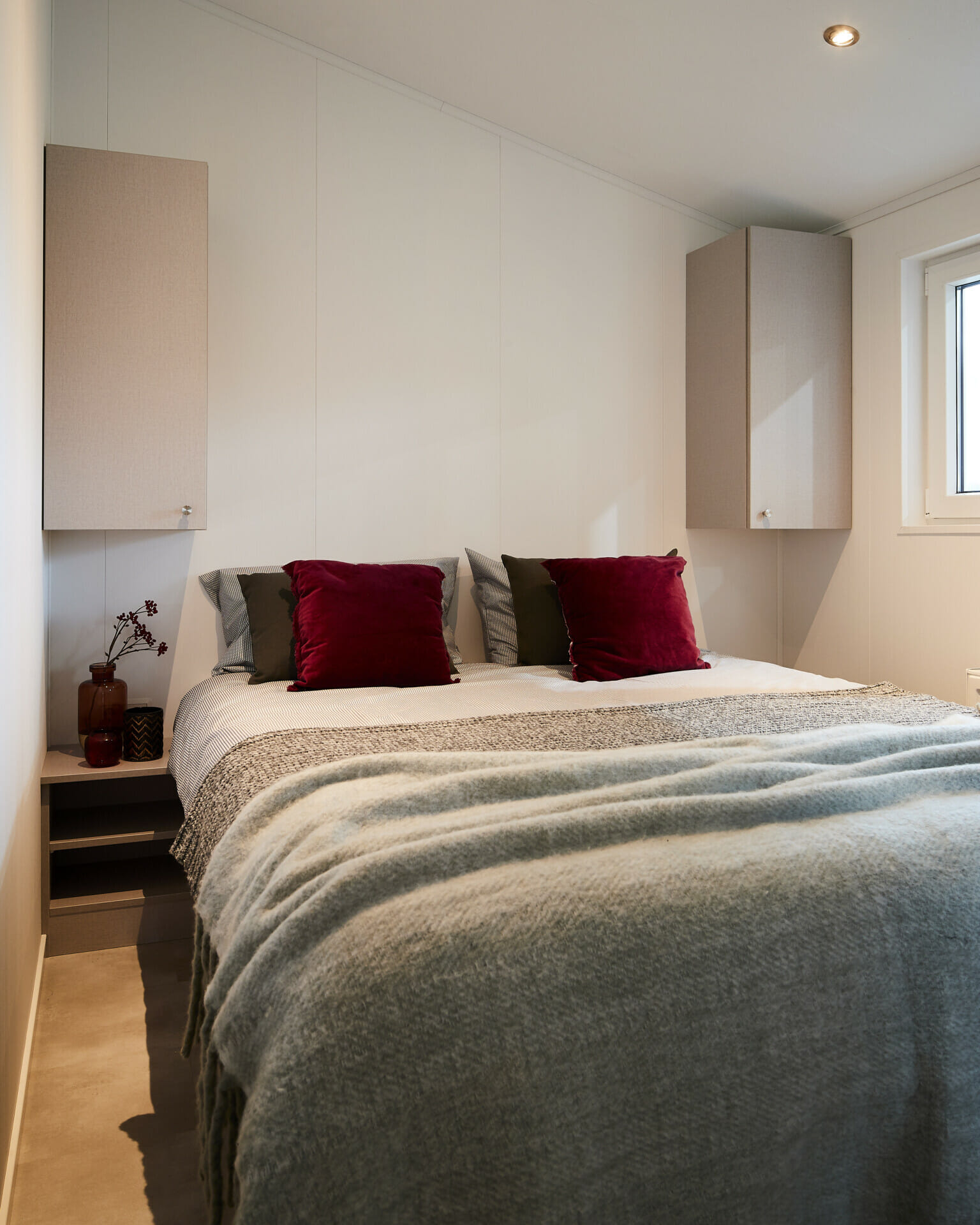 2 wandkasten naast het bed